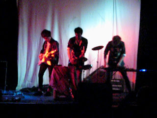 Then rounding off the evening, Gagarin stayed on for Roshi (feat Pars Radio) who were sublime. Starting with "Opium" off the new CD, which moves from singer songwriter simplicity pretty swiftly to some dark places, the still banging even in a small venue "Three Almonds and a Walnut", before David Thomas came back to provide unworldly moans to "Don't Breathe it to a Soul". It was really a bit special.